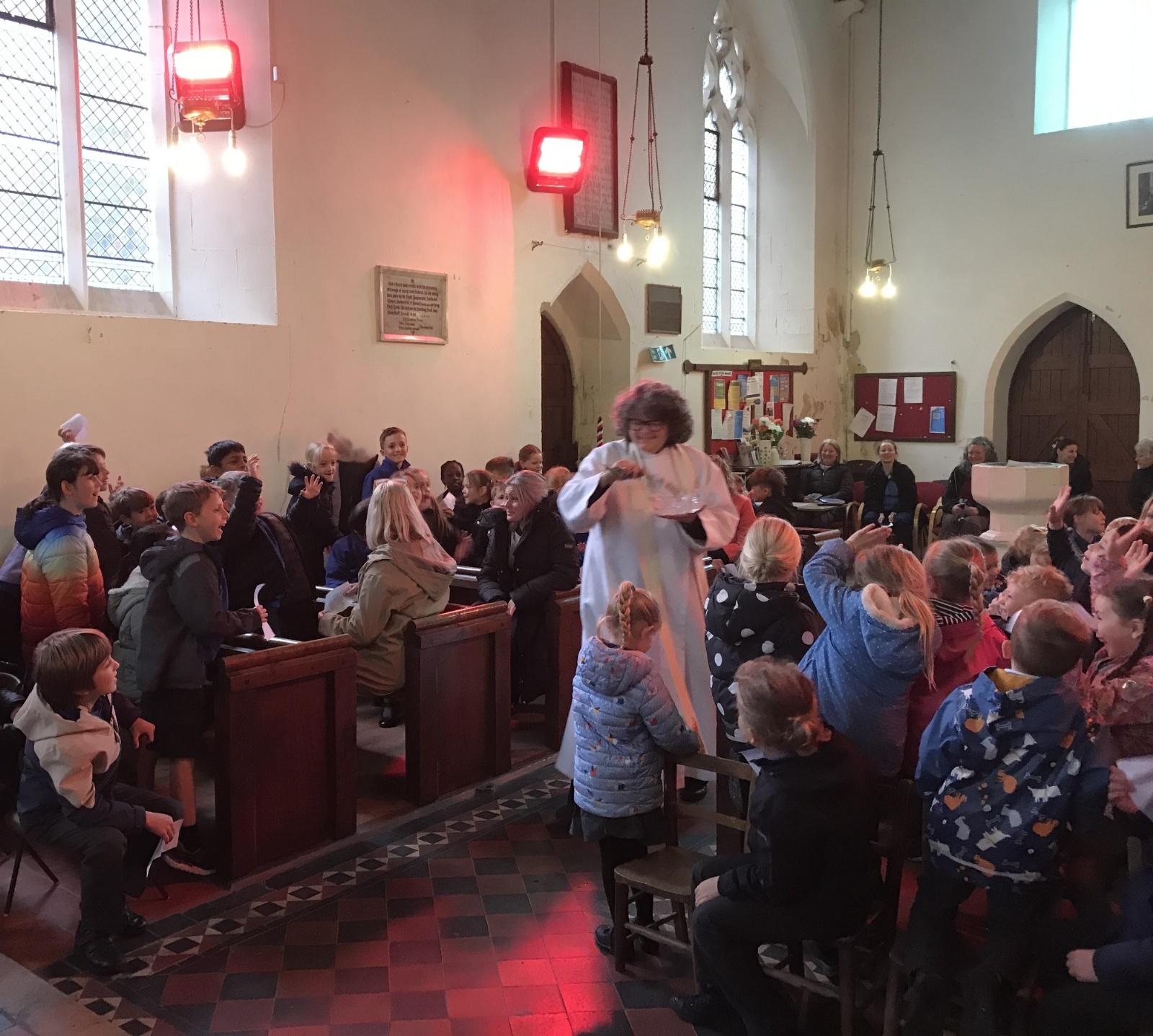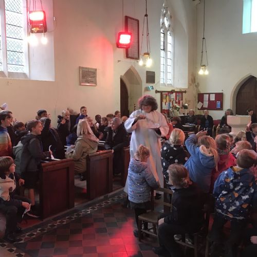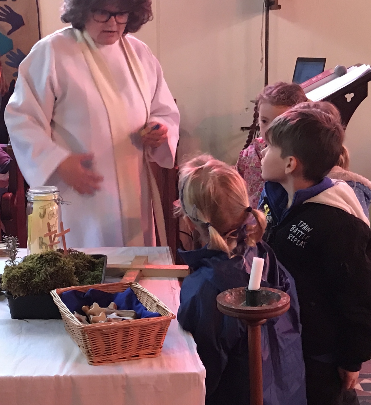 Our Easter service was full of traditions. Jane blessed the new water in the font, and then sprinkled it over everyone! Figures were added to the Easter garden and the Paschal candle was lit. Our Reception children were presented with an olive wood cross to mark the start of their time with us at LMS.